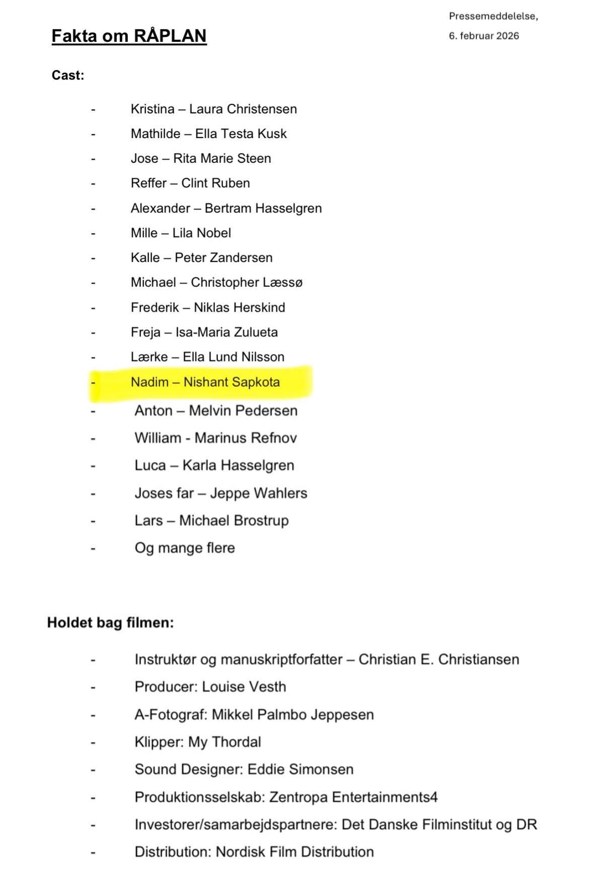 डेनमार्क । किशोर र युवाहरूको कथामा आधारित डेनिस चलचित्र ‘Råplan’ मार्फत नेपाली किशोर निशान्त सापकोटाले ठूलो पर्दामा डेब्यु गरेका छन् ।